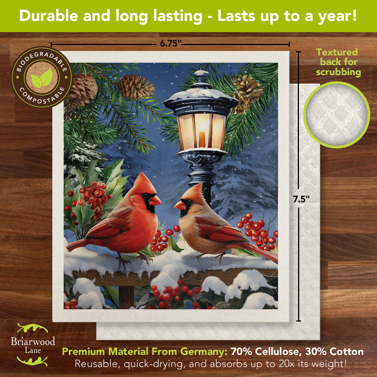 Swedish Dishcloths are a beautiful and superior alternative to the traditional paper towel. Widely adopted in Europe, these handy high absorbent cloths can replace up to 17 rolls of paper towels. Measuring 7.5" x 6.75", each cloth absorbs up to 20x its own weight and dries quickly, ready for the next use. You can use the Swedish dishcloth anywhere you would use a traditional paper towel including kitchen countertops, windows and floors.